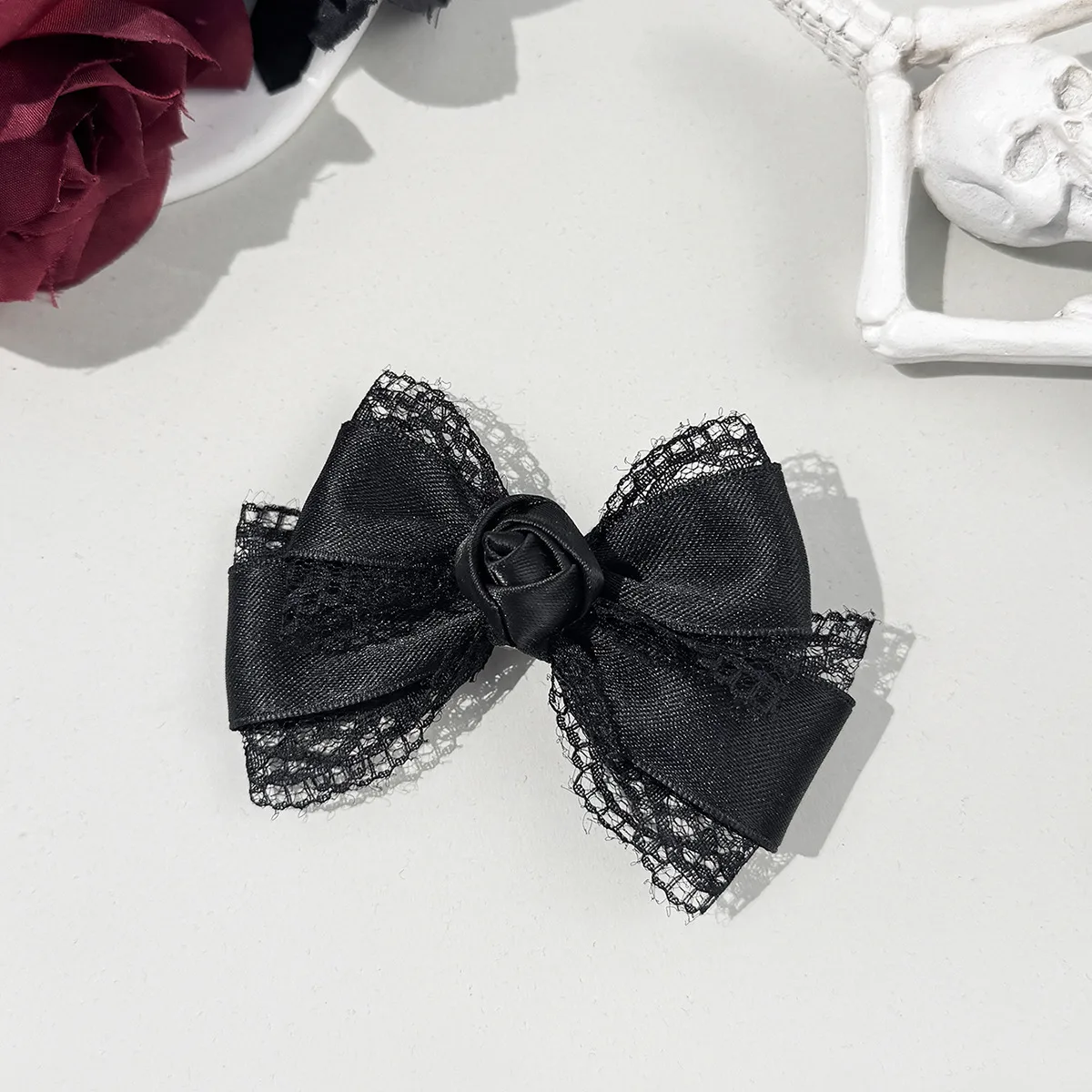 Tidlöst svart hårspänne med rosett och ros – elegant för alla tillfällen!