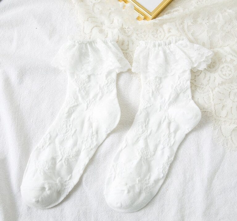 50 tals damstrumpor passar alldeles utmärkt till ett par pumps eller ett par snygga ballerinaskor. använd skor som framhäver de tidstypiska volangerna och det visuella från 50 talets mode. Historian om strumpor var att man från början sydde strumpor av vävda tyger, vilket inte gav någon bra komfortkänsla. Allt efterhand som tiden gick och under efterkrigstiden utvecklades olika stickningstekniker som än idag används för strumptillverkning. Här hittar du 50 tals strumpor med volanger vita, svarta med den klassiska 50 tals volang som prydde varje kvinna som ville vara elegant med strumpor. Idag används samma typ av strumpor till rockabilly, 1950 tals och retro kläder och klänningar